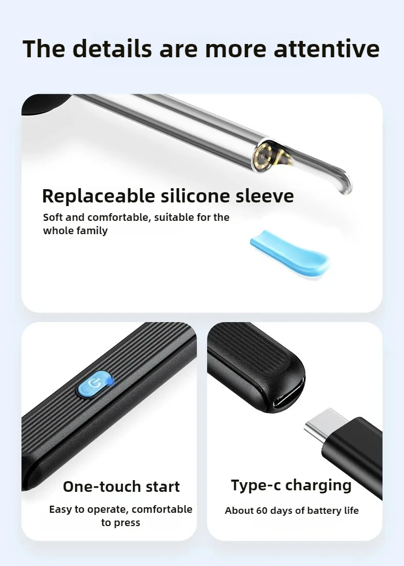 主机*1,硅胶耳勺配件*6,Type-C充电线*1,说明书*1,彩盒*1